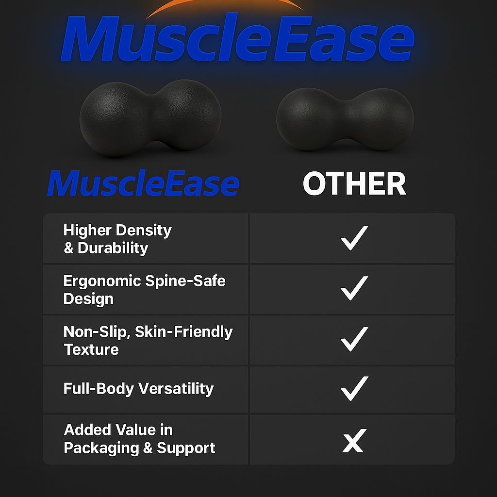 MuscleEase is a high-density peanut-shaped massage ball designed for deep tissue massage, posture correction, and muscle recovery. Its unique ergonomic design targets tight areas along the spine, neck, back, calves, and more—providing natural pain relief and relaxation.